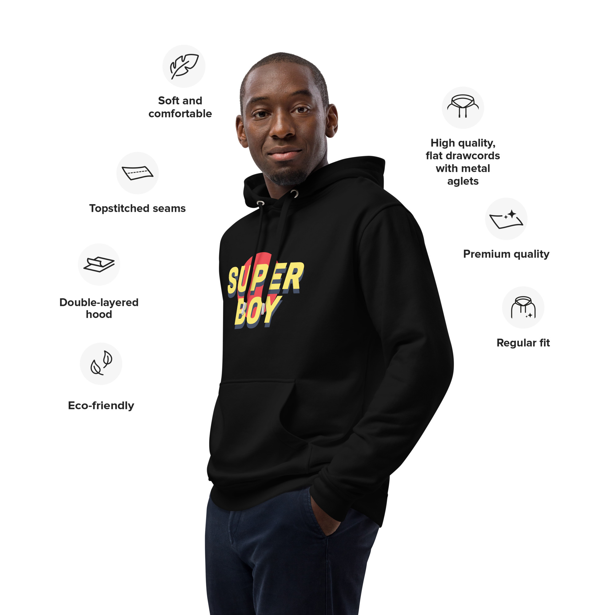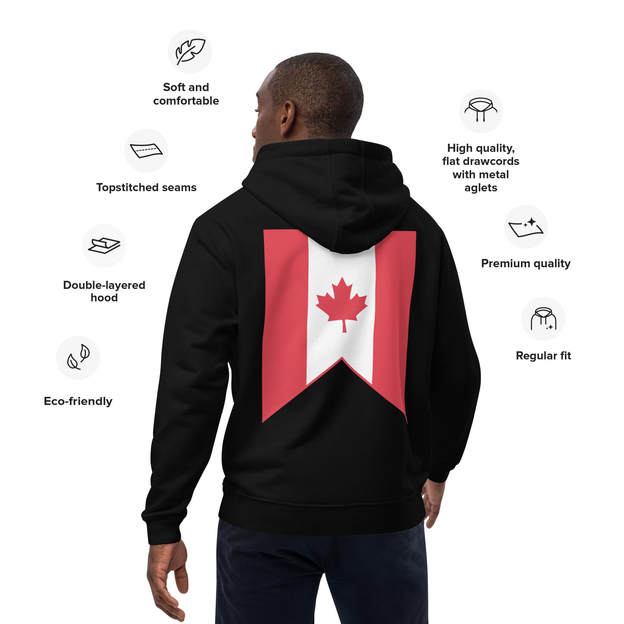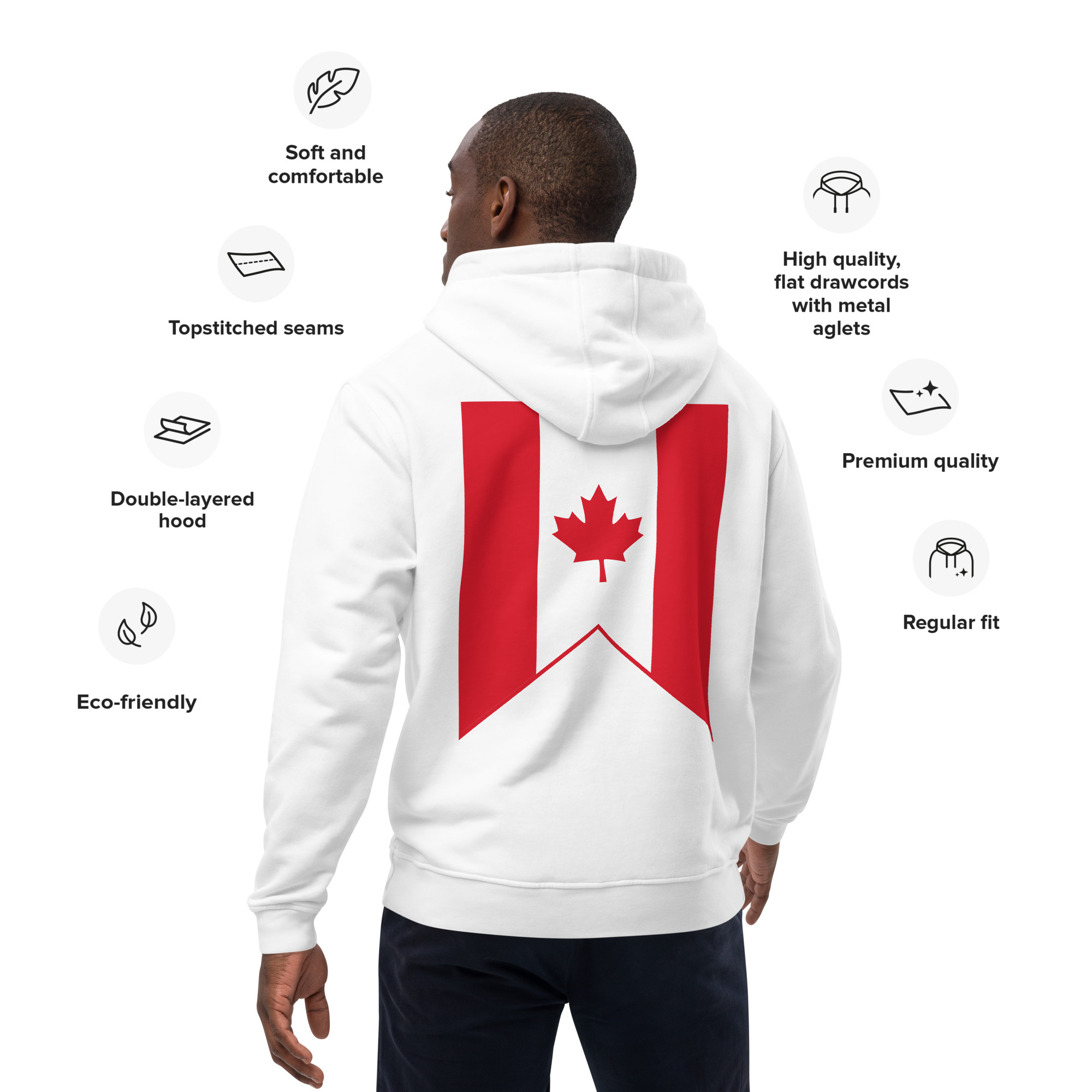 Meet the premium eco hoodie made of organic and recycled materials. With its comfortable fit, front pouch pocket, and double-layered hood, the hoodie is a classic streetwear piece that can be styled with multiple different looks.